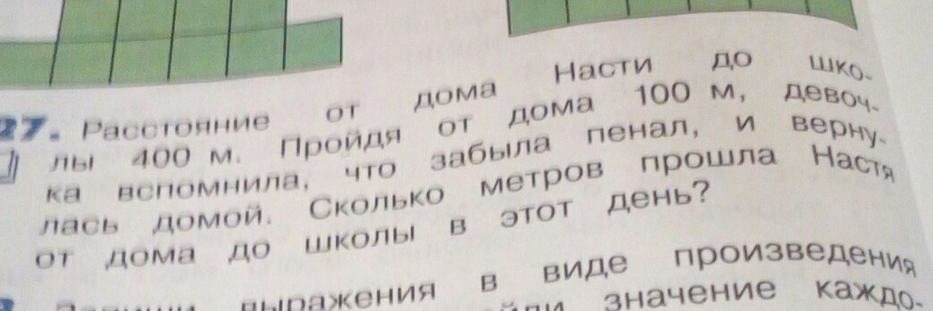400+100+100=600(м) прошла Настя от дома до школы в этот день