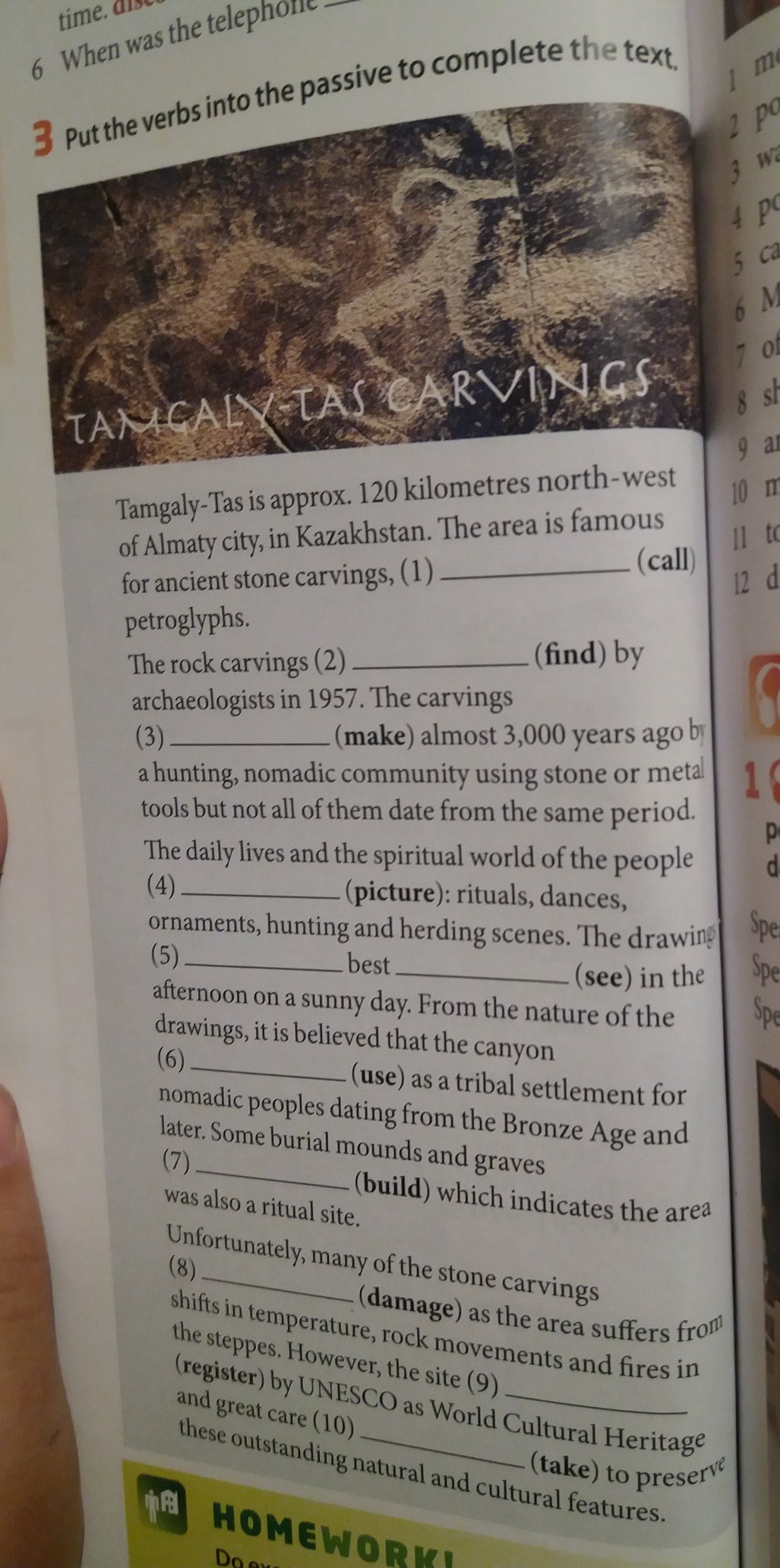 1. called; 2. were found; 3. were made; 4. were pictured; 5. were ... seen; 6. was used; 7. were built; 8. are damaged; 9. is registrated; 10. is taken