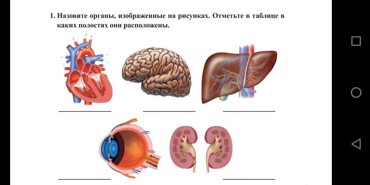 Сердце, Мозг, Печень, Глазное яблоко, Почки