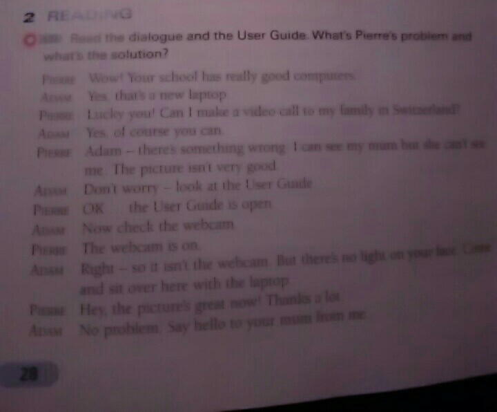 Прочитайте диалог и пользовательскую инструкцию.В чем проблема Пьера и как ее решить?