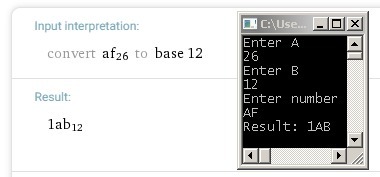 Перевести число из системы счисления с основанием A в систему с основанием B. Можно считать, что 2 ≤ A, B ≤ 10, а число дано в виде массива цифр.