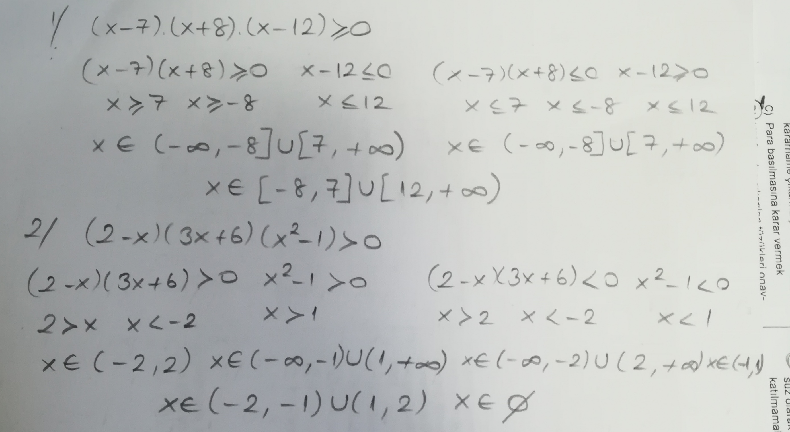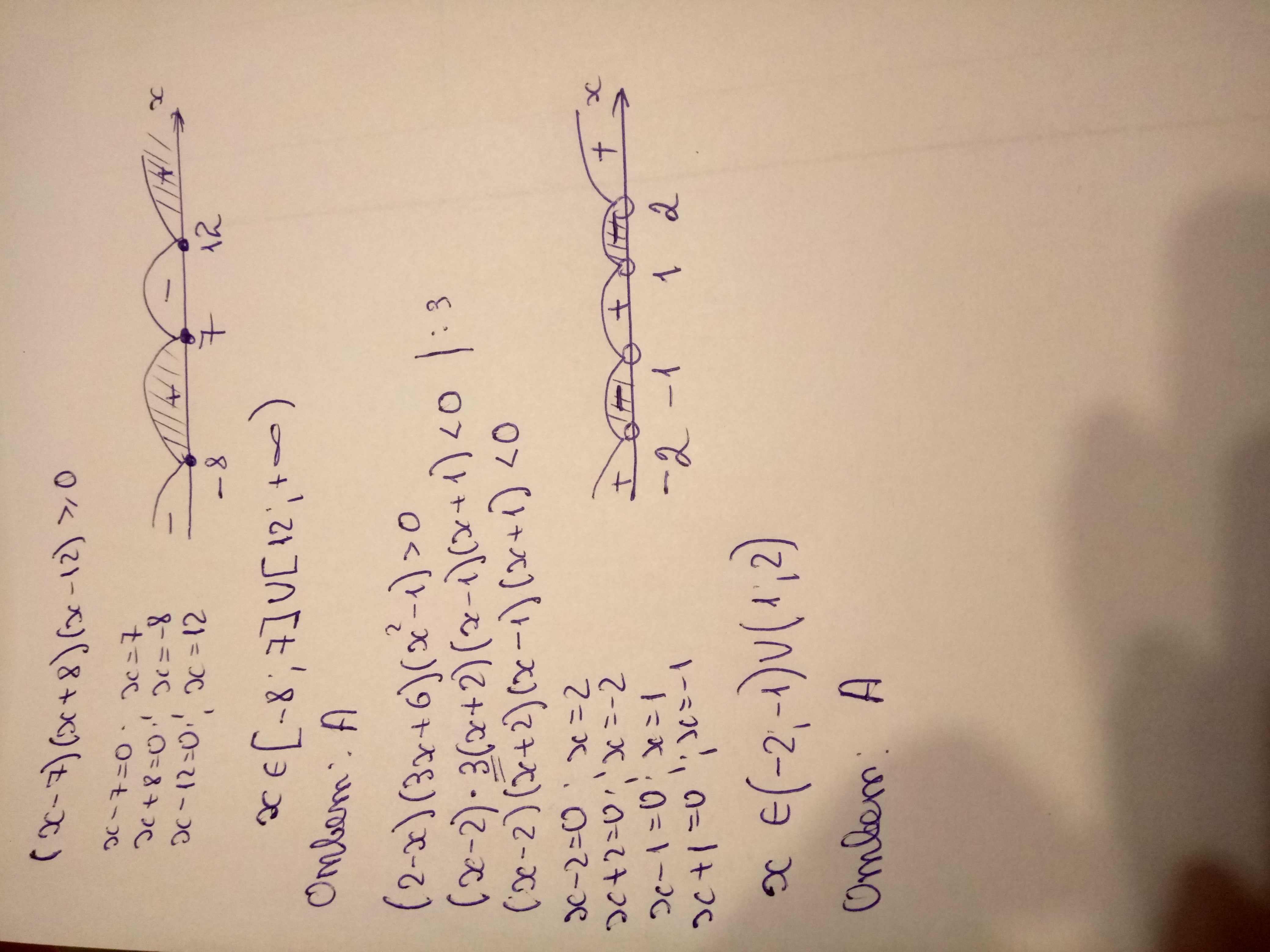 Решите неравенство (x - 7) (x + 8) (x - 12) ≥ 0