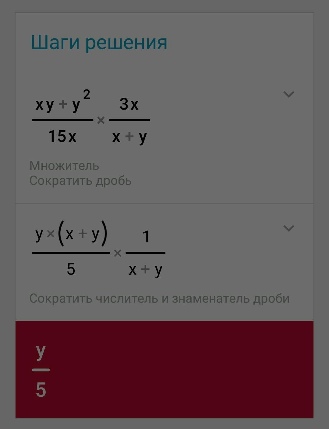 4)xy+y^2/15x*3x/x+y=y(x+y)*3x/15x*x+y=y/5 ; 7.5/5=1.5