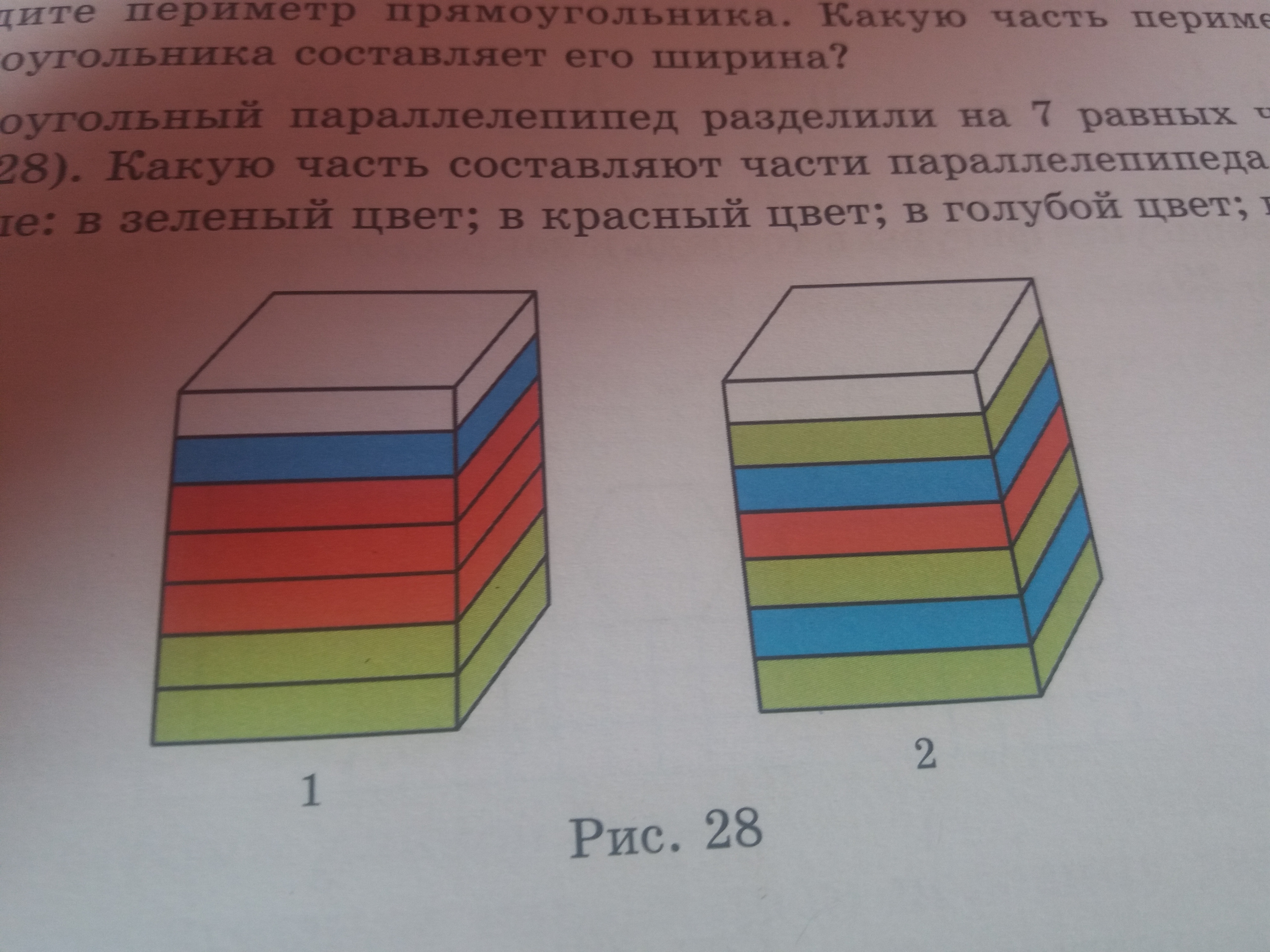 Прямоугольный паралепипед разделили на 7 равных частей. (Рис.28)
