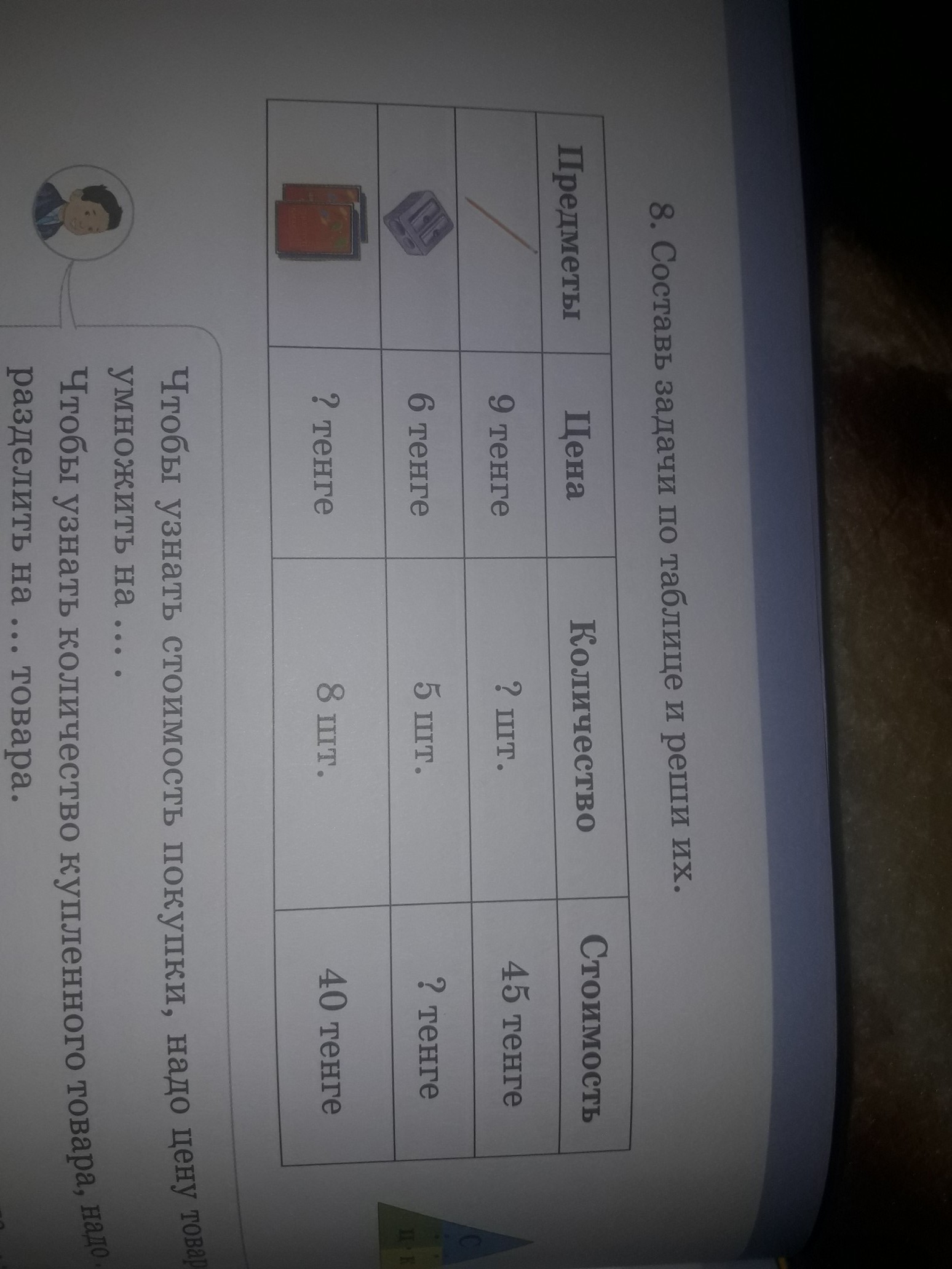 3) 40 ÷ 8 = 5 (тг) - цена 1 книги