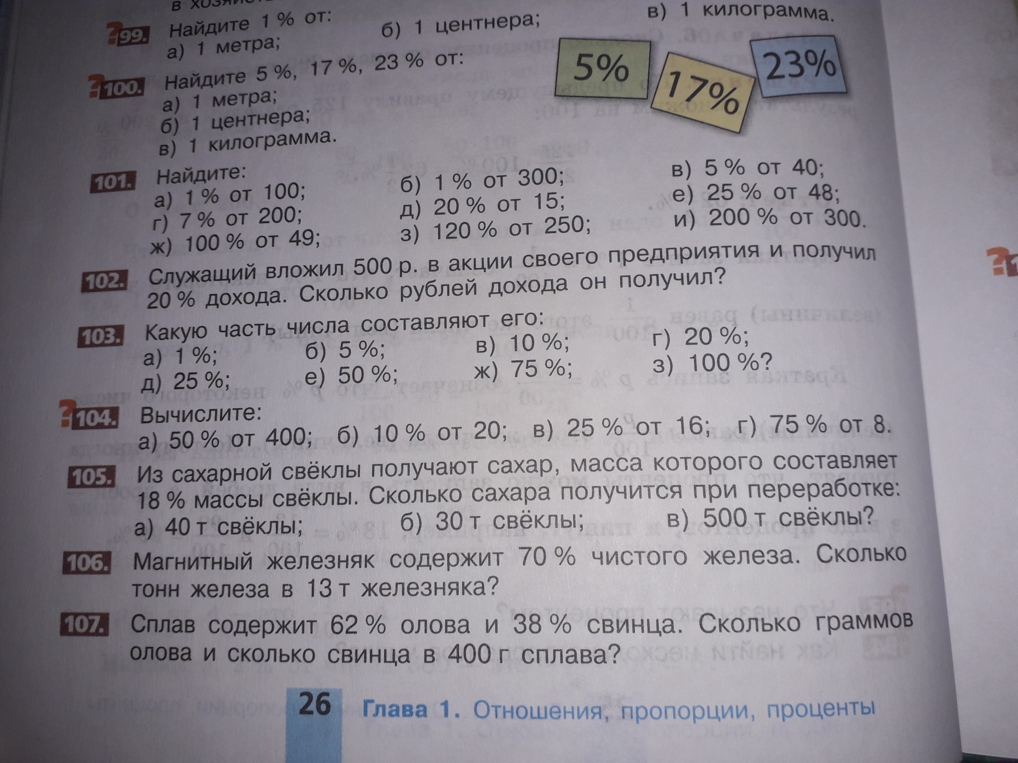 1 %от 100= 100÷100×1=1