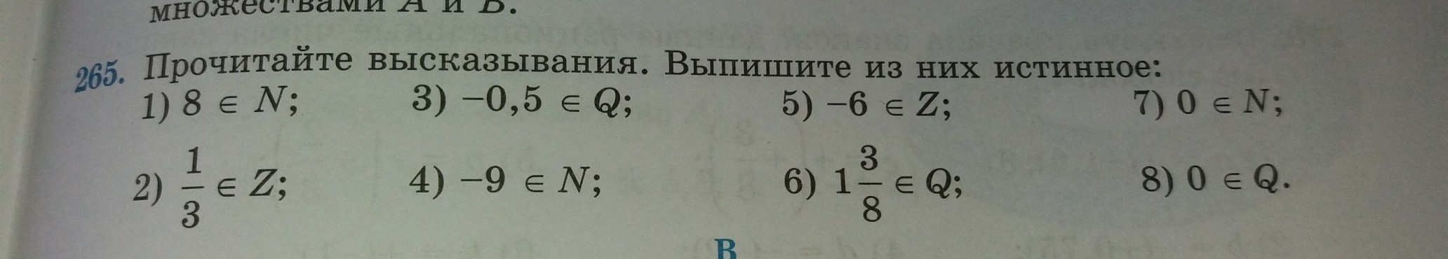8пренадлежит мн-ву целых чисел -верно2, 13пренадлежит мн-ву целых чисел -неверно3, -0,5 принадлежит мн-ву рациональных чисел -верно 4, -9пренадлежит мн-ву натуральных чисел -неверно5, -6 принадлежит мн-ву целых чисел 6