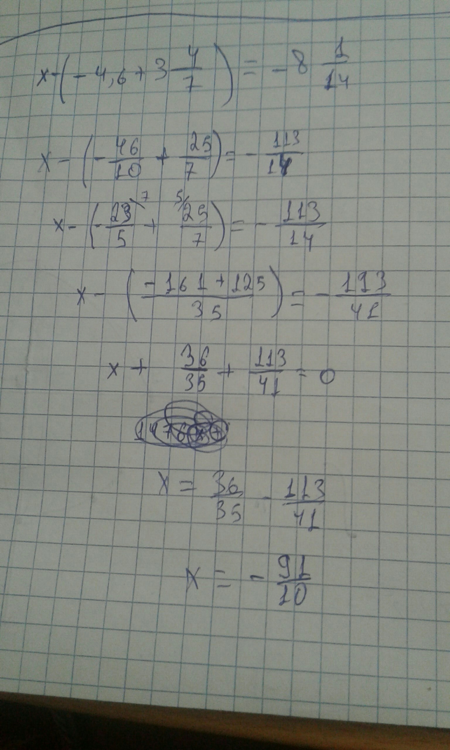 х=-4,6-8 1/14+3 8/14
