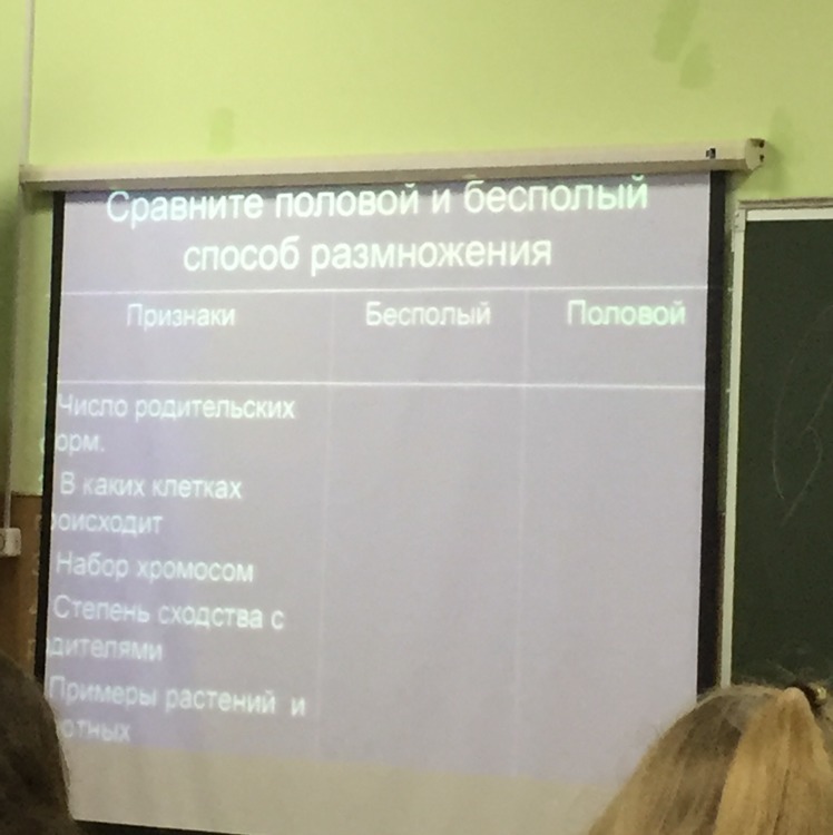 Бесполое размножение- одна родительская особь, гаметы не образуется, миоз отсутствие, есть митоз, быстрое увеличениеи численности . Половое-обычный две родительские особи, образуют гаплоидные гаметы, которые сливаются, так что получается диплоидная зигота, менее быстрое увеличение численности.