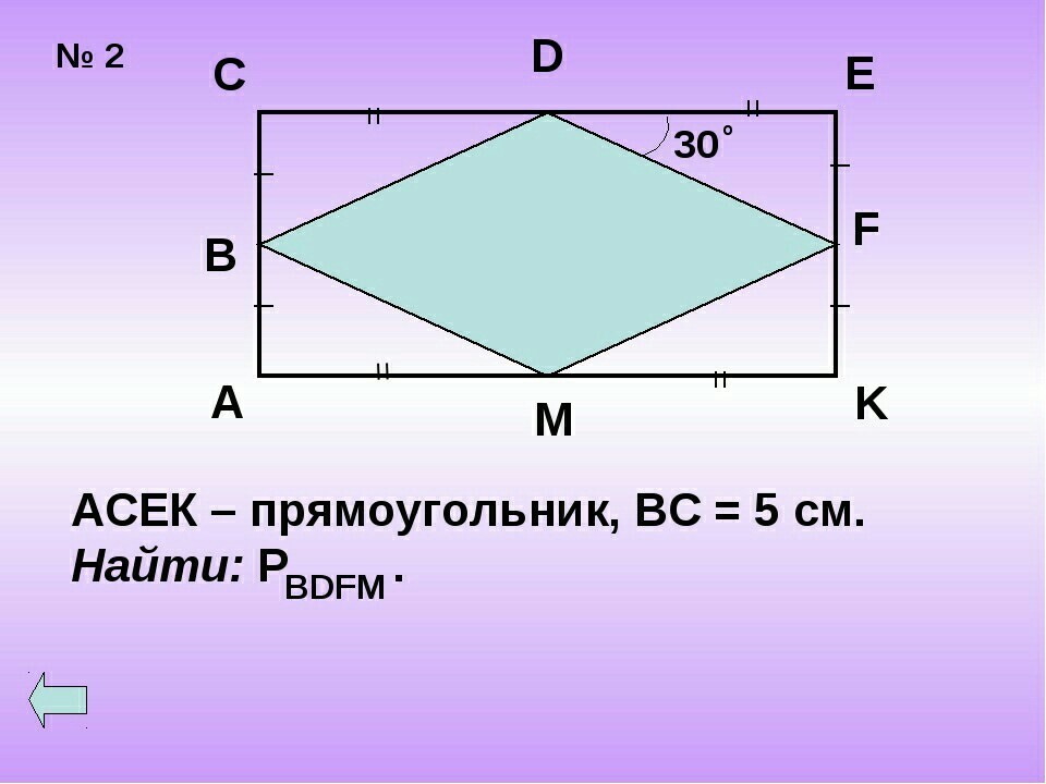 по идее, EF=5 см, тогда DF=10 см, так как EF лежит против угла в 30 градусов в прямоугольном треугольнике, BDFM по всей видимости параллелограмм (все треугольники равны, поэтому стороны BDFM тоже равны), тогда P= (10+10)2=40 см