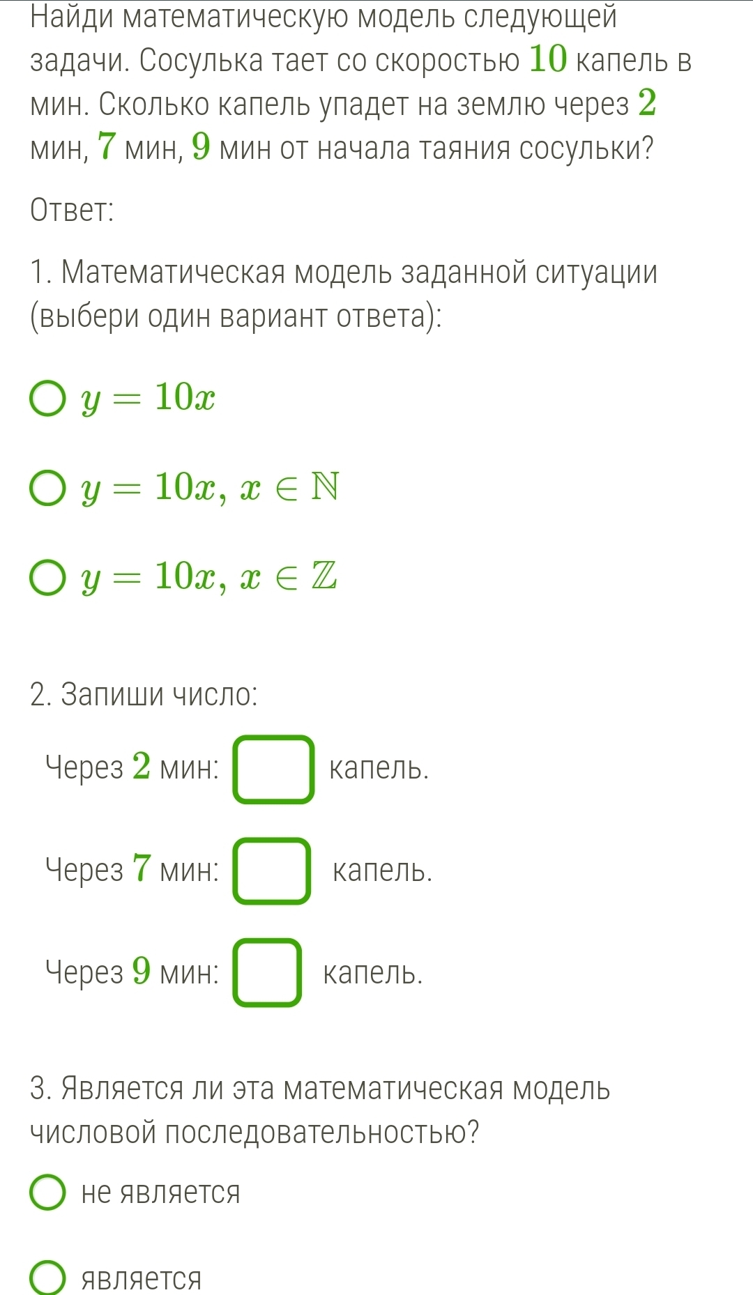 y=10x, x ∈ N, означает что x натуральное число: 1,2, 100 минет.