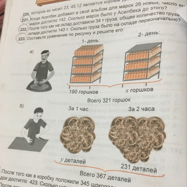 б) За два часа было изготовлено 231 деталь, за один час - у деталей, а всего было изготовлено 367 деталей