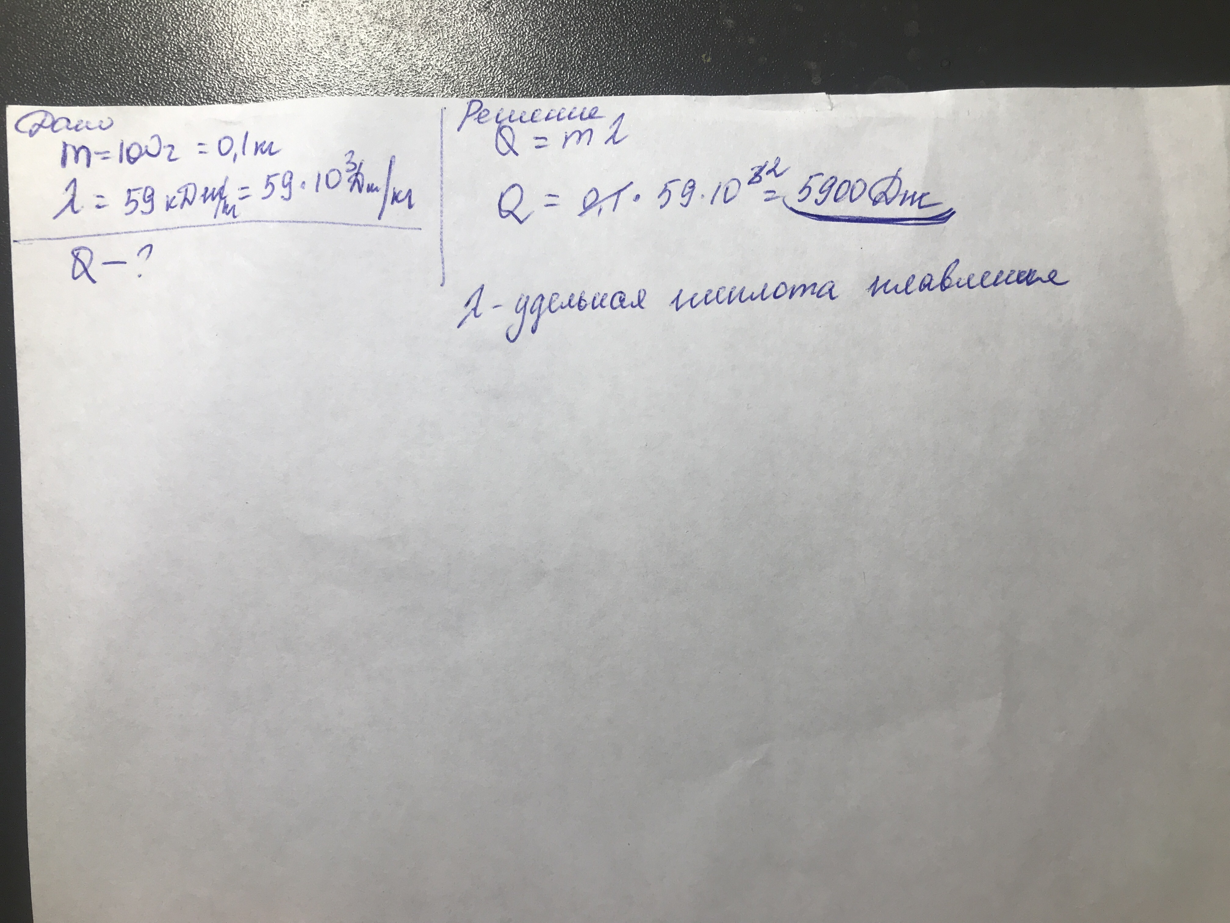 Q = λm = 59000 * 0,1 = 5900 Дж = 5,9 кДж