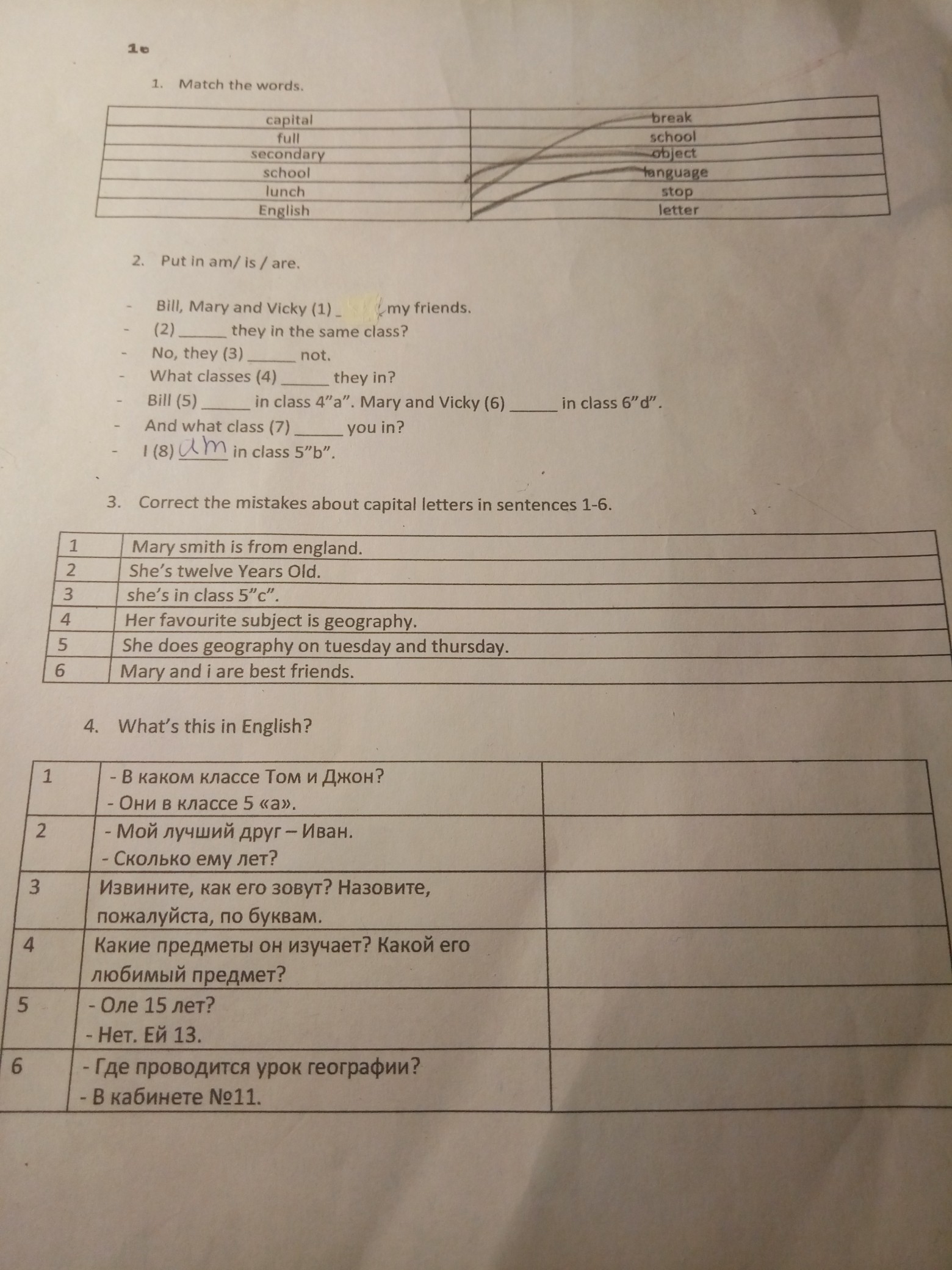 3. Mary Smith is from England. She's twelve years old. She's in class 5"c"