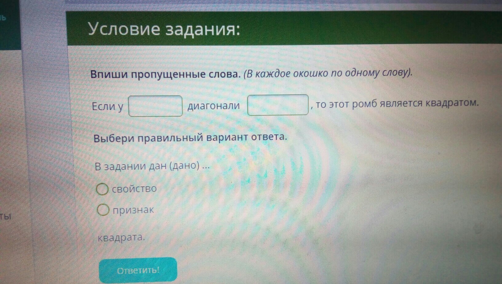 Если у ромба диагонали равны, то этот ромб является квадратом.