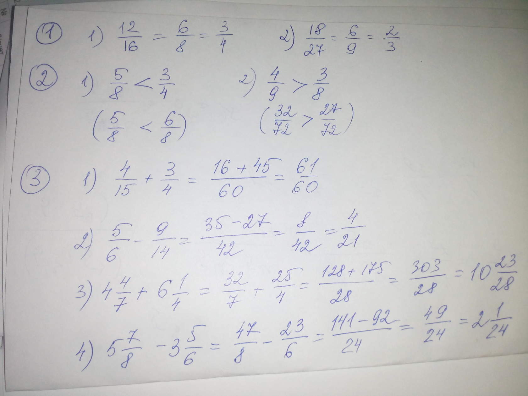 5/8 < 3/4 (приведем к общему знаменателю, получим: 5/8 и 6/8, так как 5 < 6, то 5/8 < 3/4)