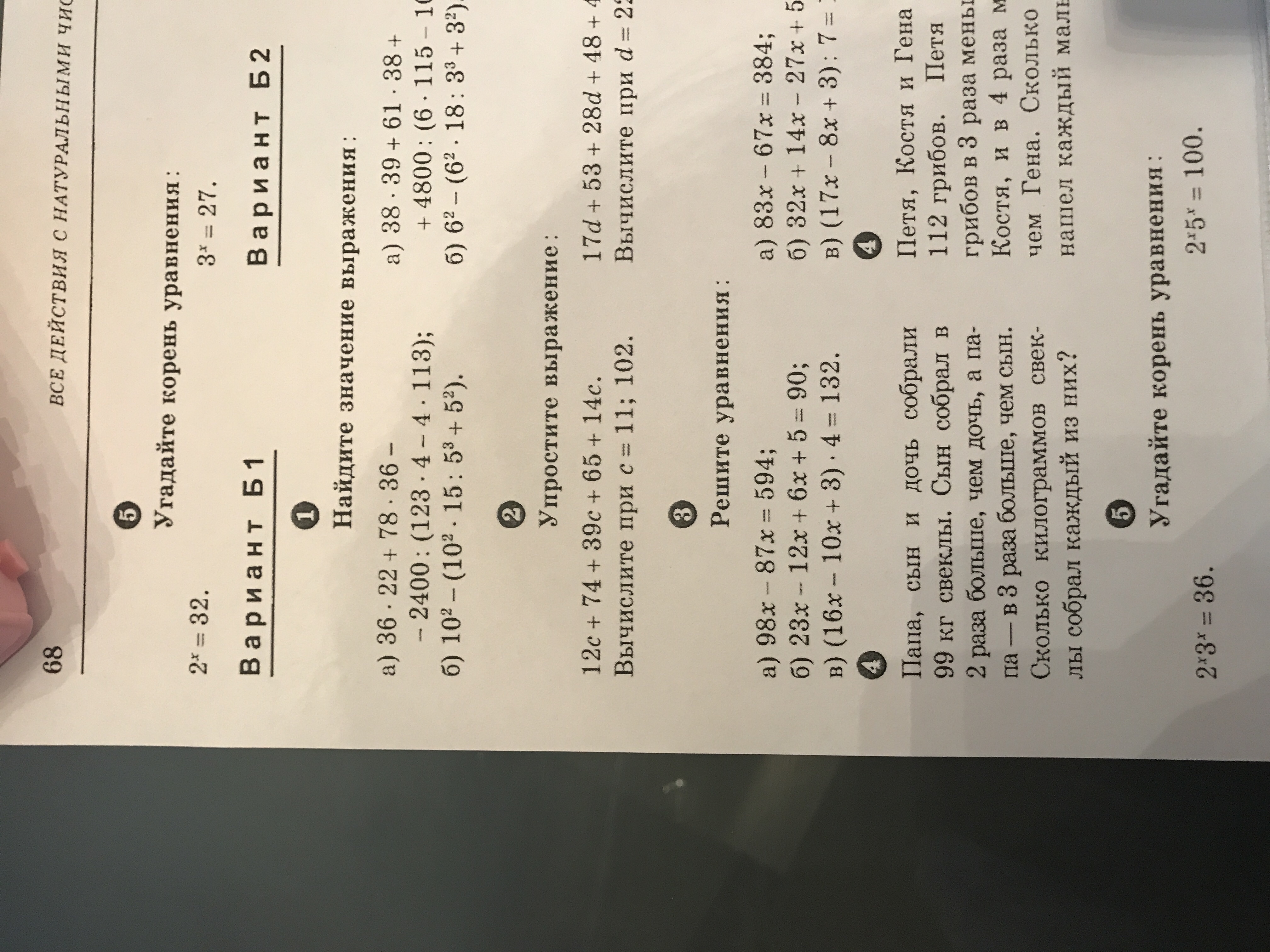 A) 98X-87X=594 б) 23x-12x+6x+5=90 в) (16x-10x+3)*4=132