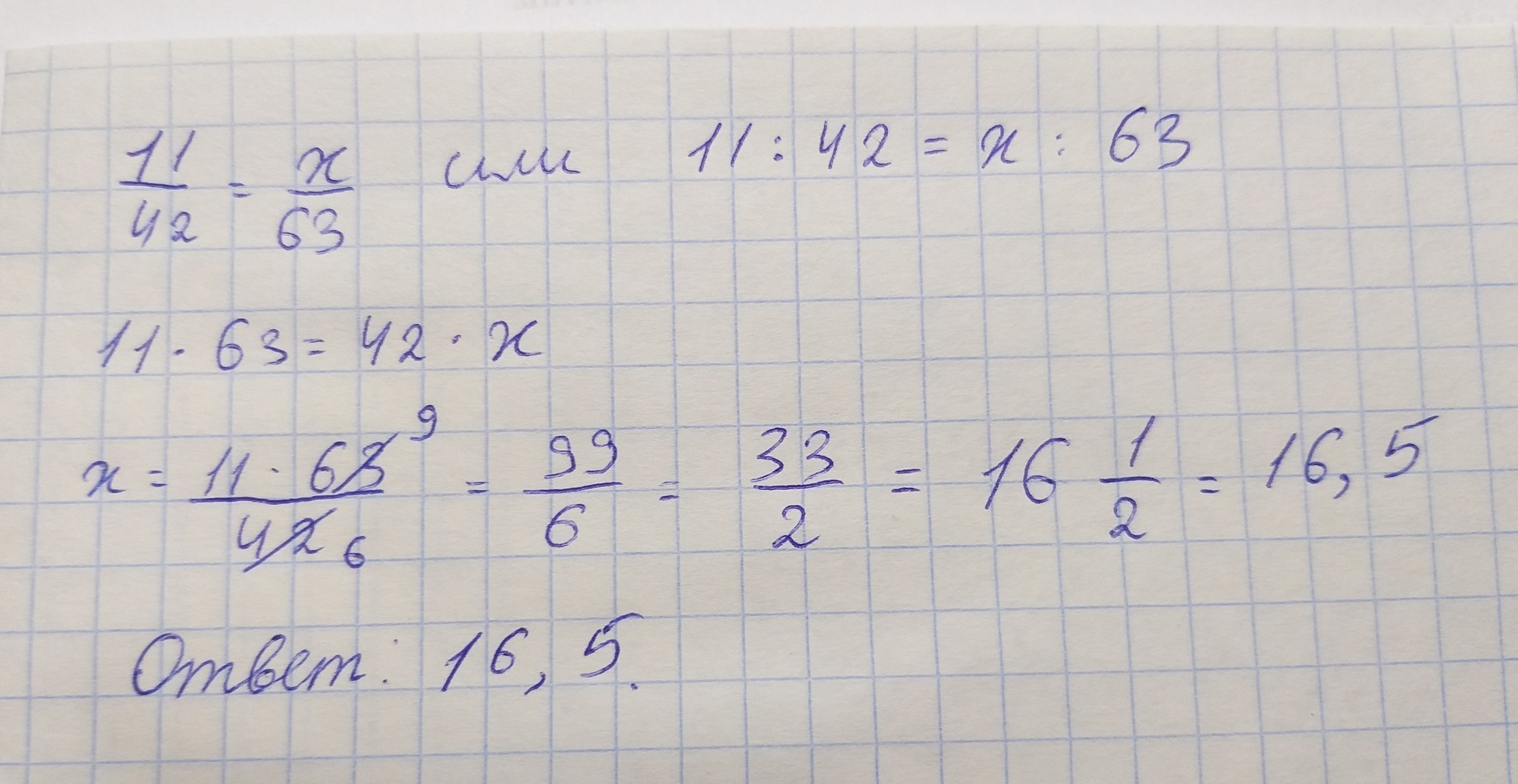 x=11×63/42=99/6=66/2=16 1/2 или 16,5