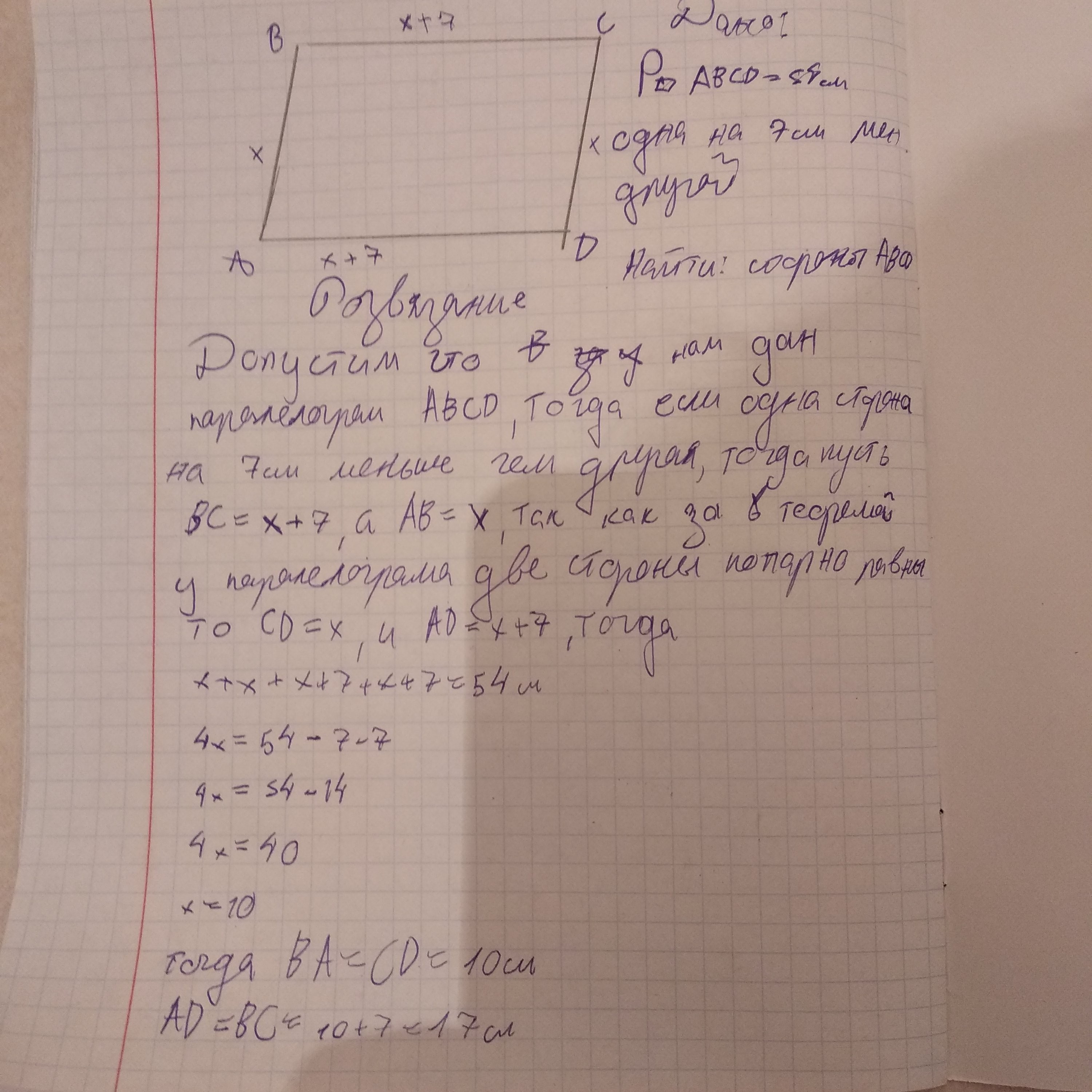 1. Одна из сторон параллелограмма на 7 см меньше другой, а его пери-