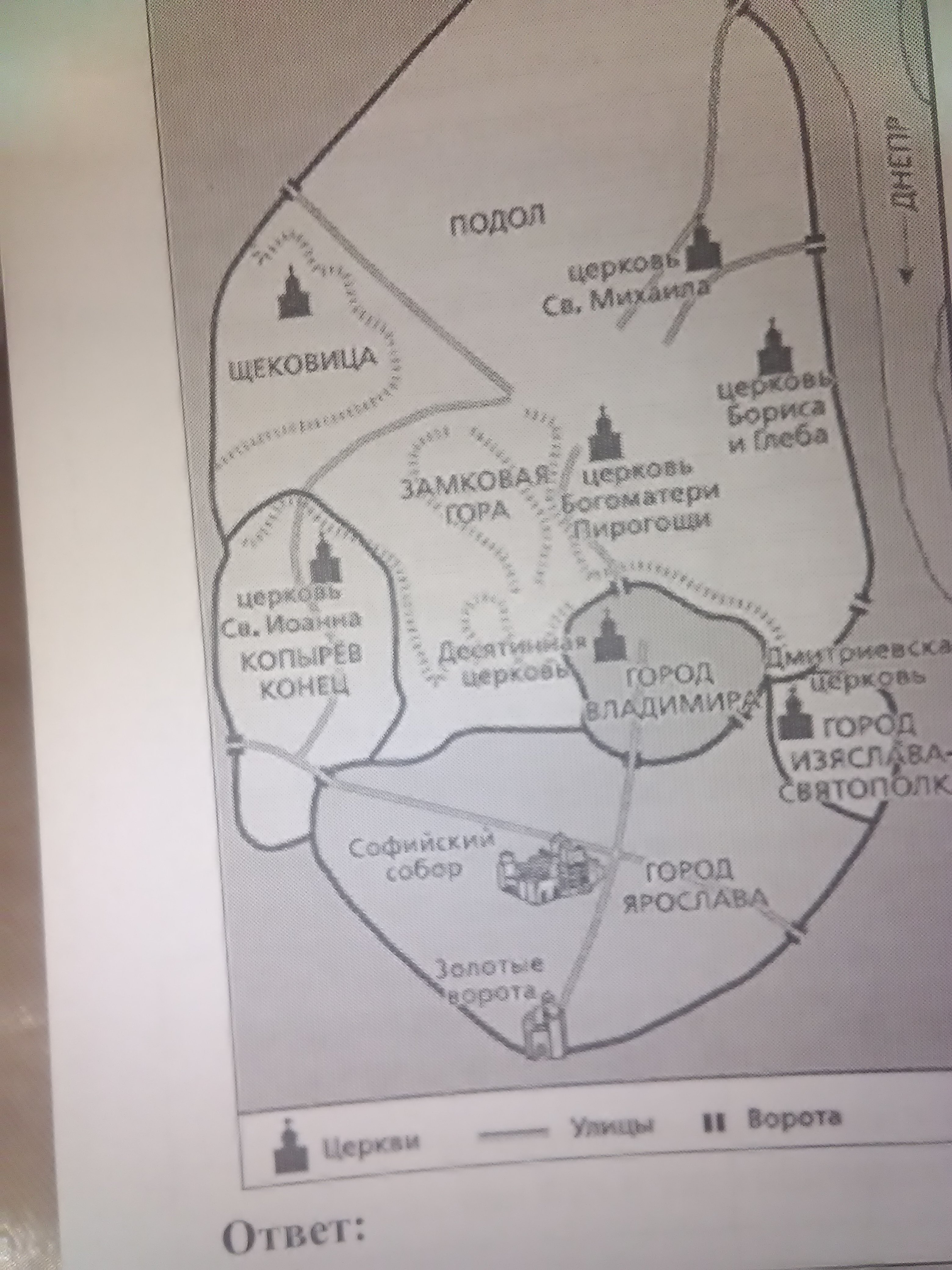 3. Укажите название обозначенного на плане города храма, который был первым каменным храмом на территории Древнерусского государства
