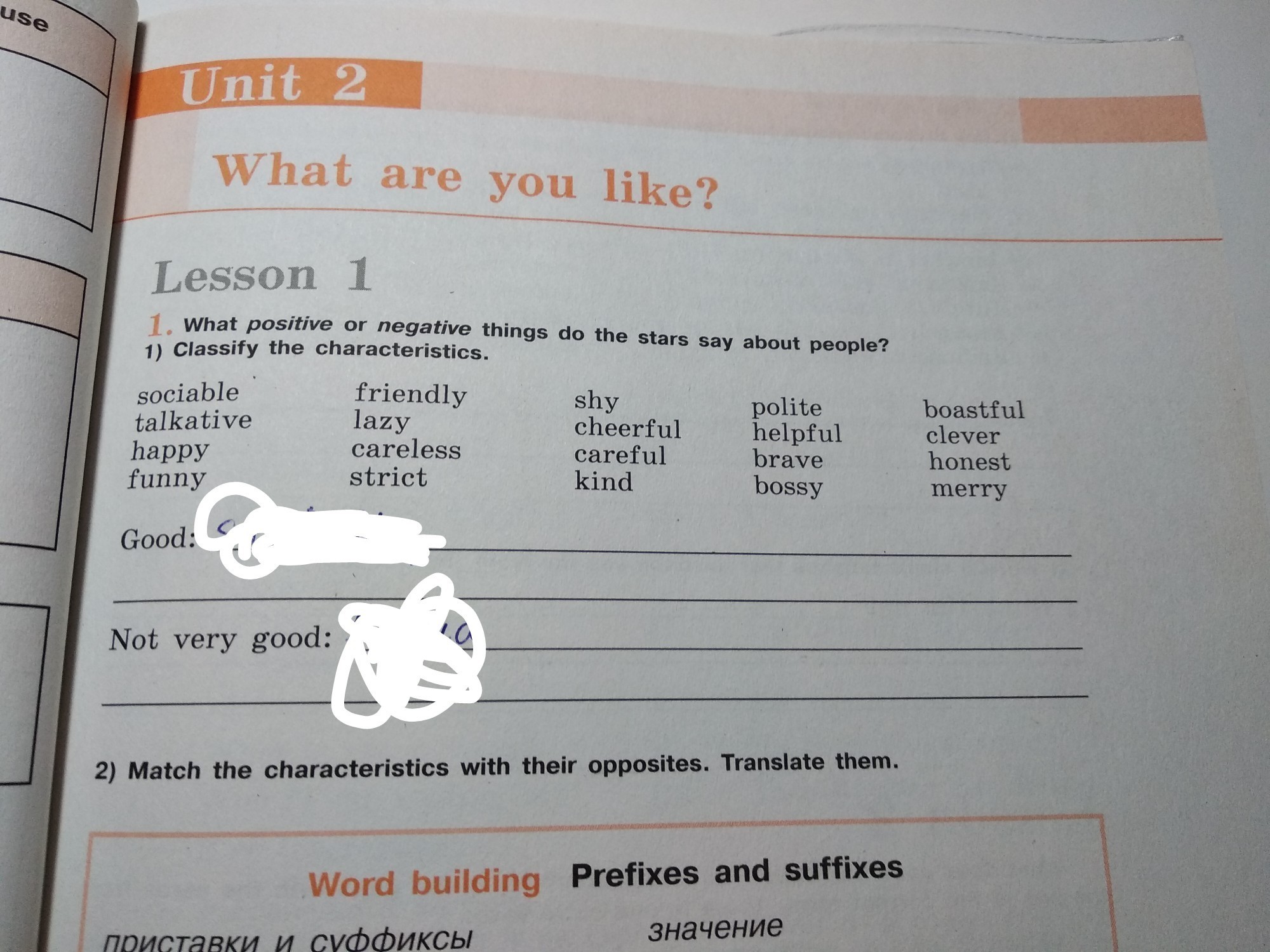 Not very good: lazy, careless, stickt, careless, shy, bossy, boastful,