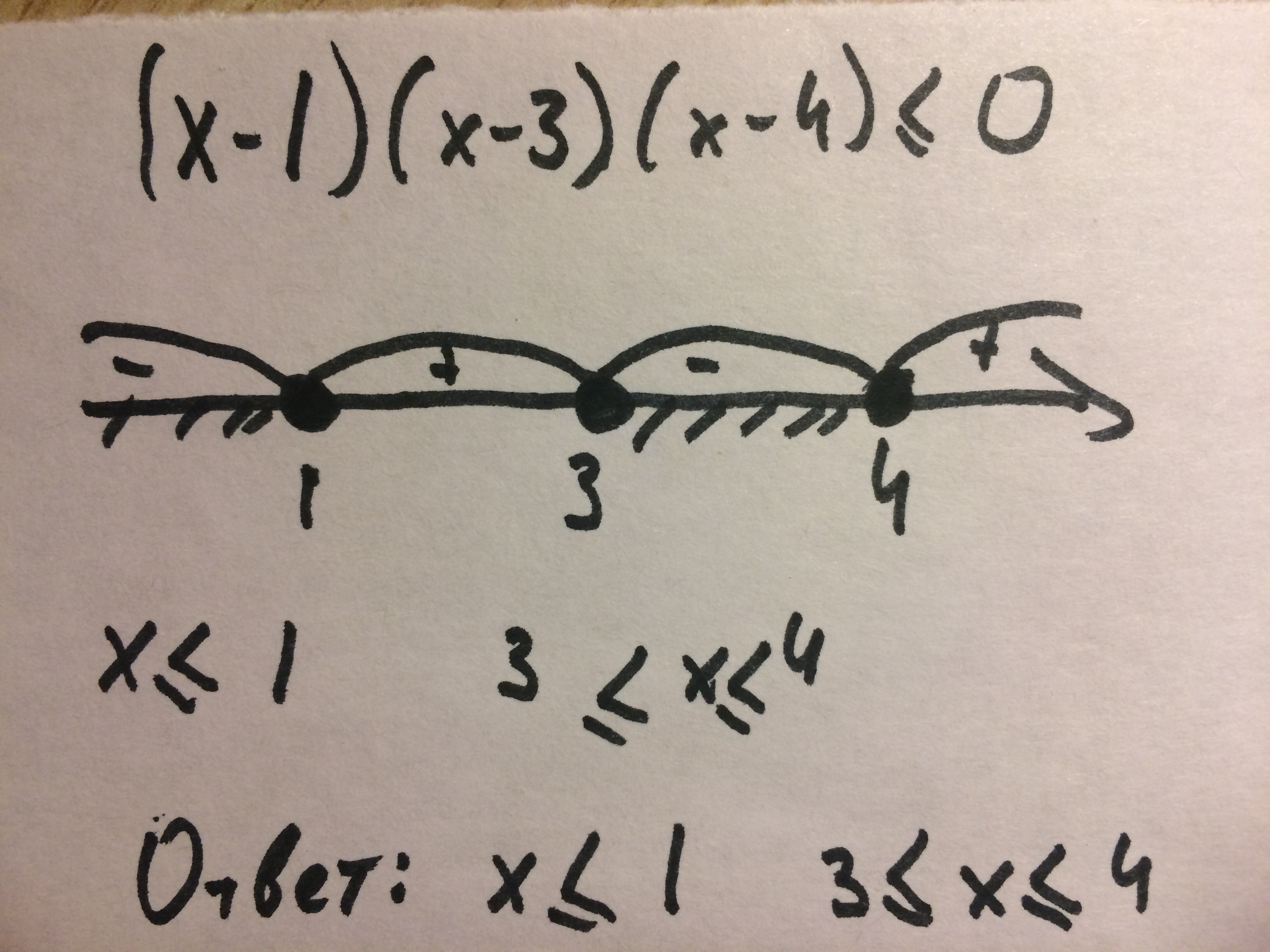 (х-1)(х-3)(х-4)≤0