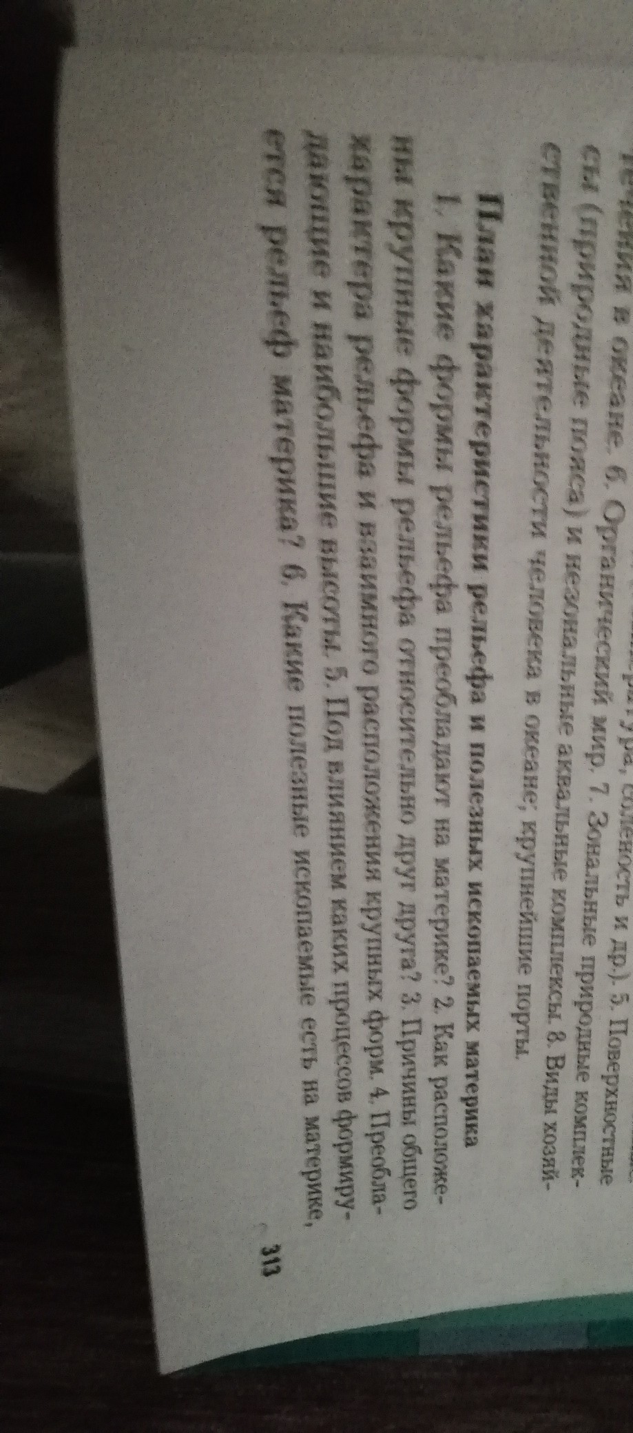 В Африке преобладает рельеф равнинный, на северо-западе расположены Атласские горы, в Сахаре — нагорья Ахаггар и Тибести. На востоке — Эфиопское нагорье, к югу от него Восточно-африканское плоскогорье, где находится вулкан Килиманджаро (5895 м) — высочайшая точка материка. На юге расположены Капские и Драконовы горы . Уголь (месторождения в ЮАР). ...Нефть (месторождения в Ливии, Алжире и Нигерии). ...Марганцевые руды (месторождения в ЮАР). ...Хромитовые руды (месторождения в ЮАР). ...Титаномагнетиновые руды (месторождения в ЮАР). ...Алюминий (месторождения бокситов в Камеруне).