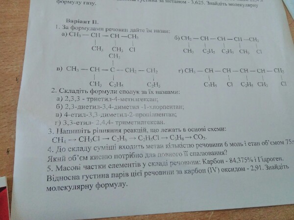 Решение всех 5 заданий предлагаю на фото. Так как задания на Украинском языке, то в первом номере возможно следует изменить последовательность заместителей в соответствии с вашим алфавитом.