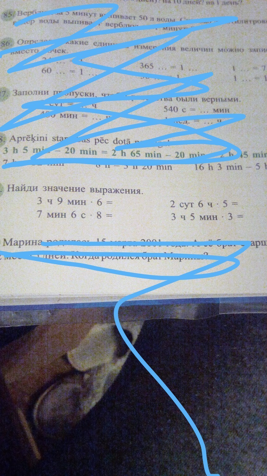 3ч 9мин это 189минут 189×6=1134 мин =18ч 54мин вроде 1134÷60=18.9 18целых часов и 9десятых часа 18×60=1080 1134-1080=54 получаем 18ч 54мин как то так.... хотя можно отдельно все на 6 умножить 3на6 получим часы 9на 6 минуты так же и с остальными с сутками поинтереснее 2суток на 5 равно 10 6 часов на 5 равно 30 в сутках 24 часа 30-24равно 6 получаем 11 суток 6 часов