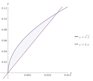 s(x) = x¹/² - 9*x - исходная функция площади - интегрируем.