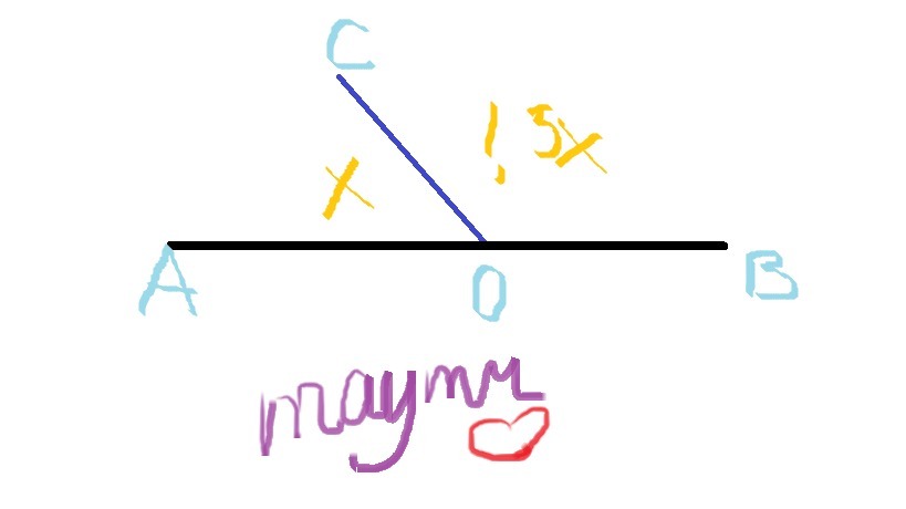 Пусть ∠АОС - х°, тогда ∠ВОС - 1.5х°. Сумма смежных углов равна 180°.