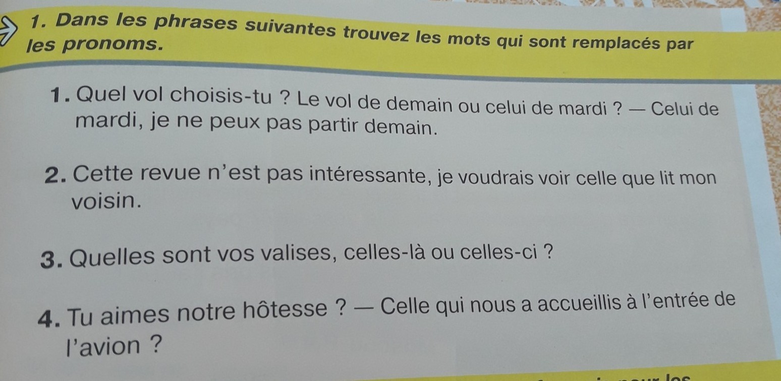 I. Dans les phrases suivantes trouvez les mots qui sont remplacés par les pronoms.