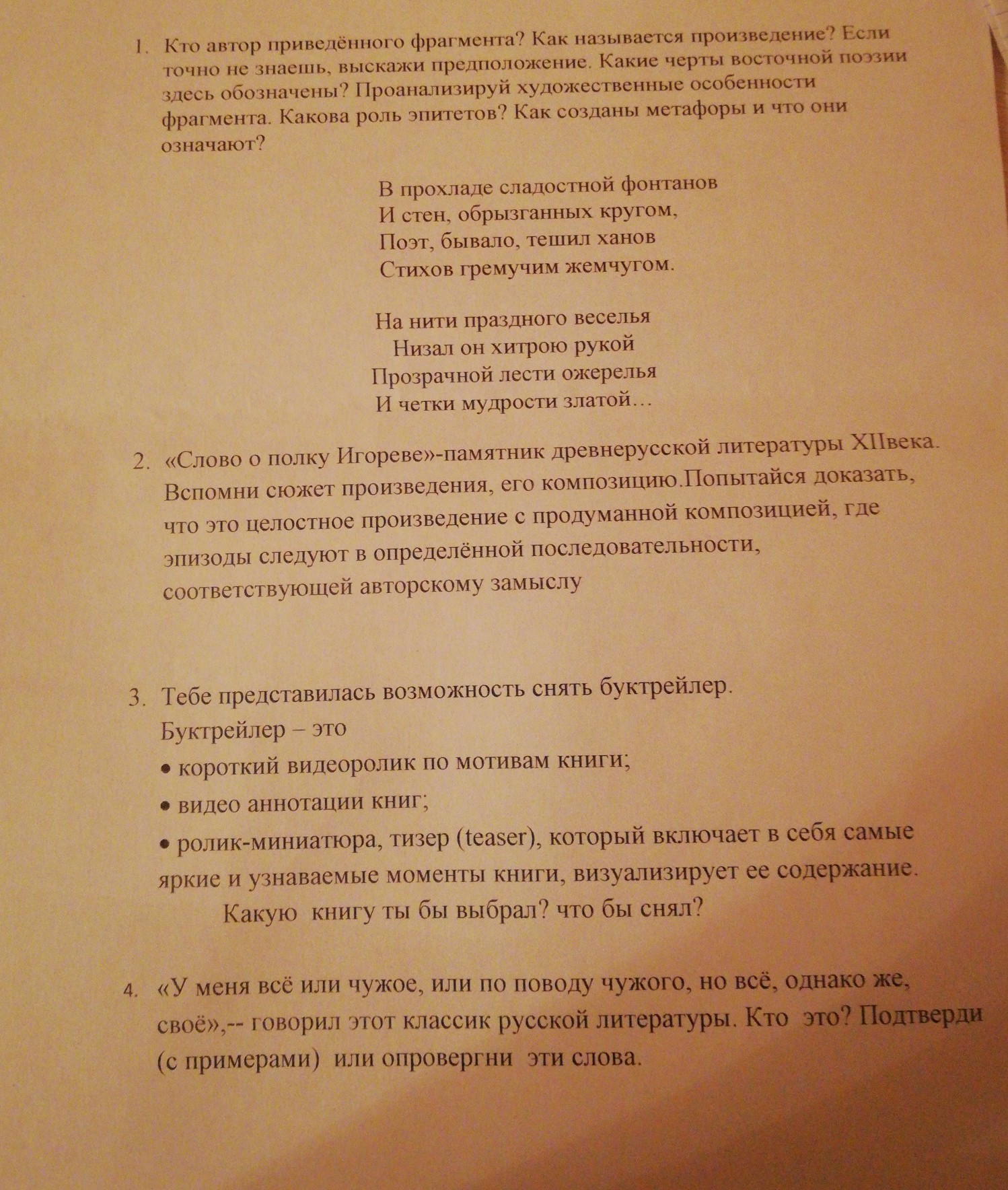 А.С.Пушкин "В прохладе сладостной фонтанов..."Остальное не знаю...Кстати,в каком ты классе?Я в 7.