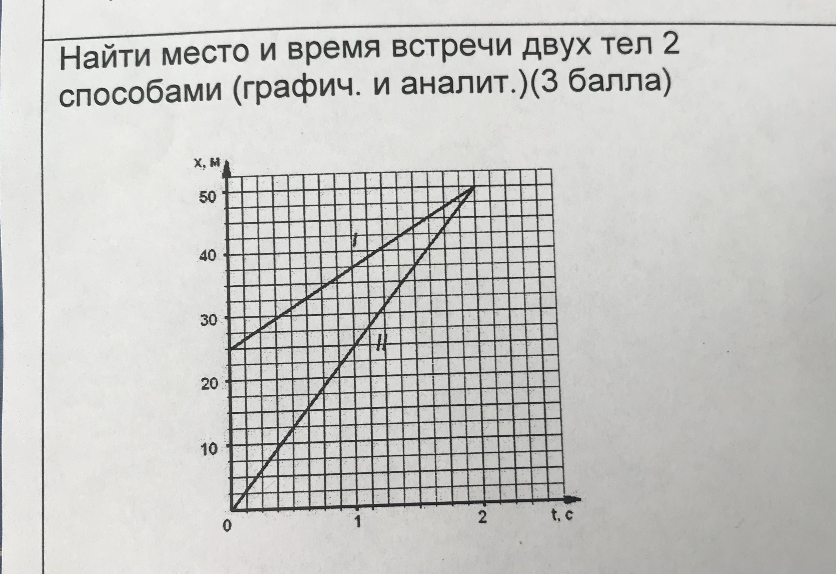 Найдите место и время встречи двух тел 2 способами ( граф. И аналит. ) помогите , пожалуйста.
