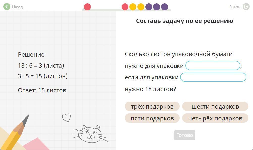 Сколько листов упаковочной бумаги нужно для упаковки пяти подарков, если для упаковки шести подарков нужно 18 листов?