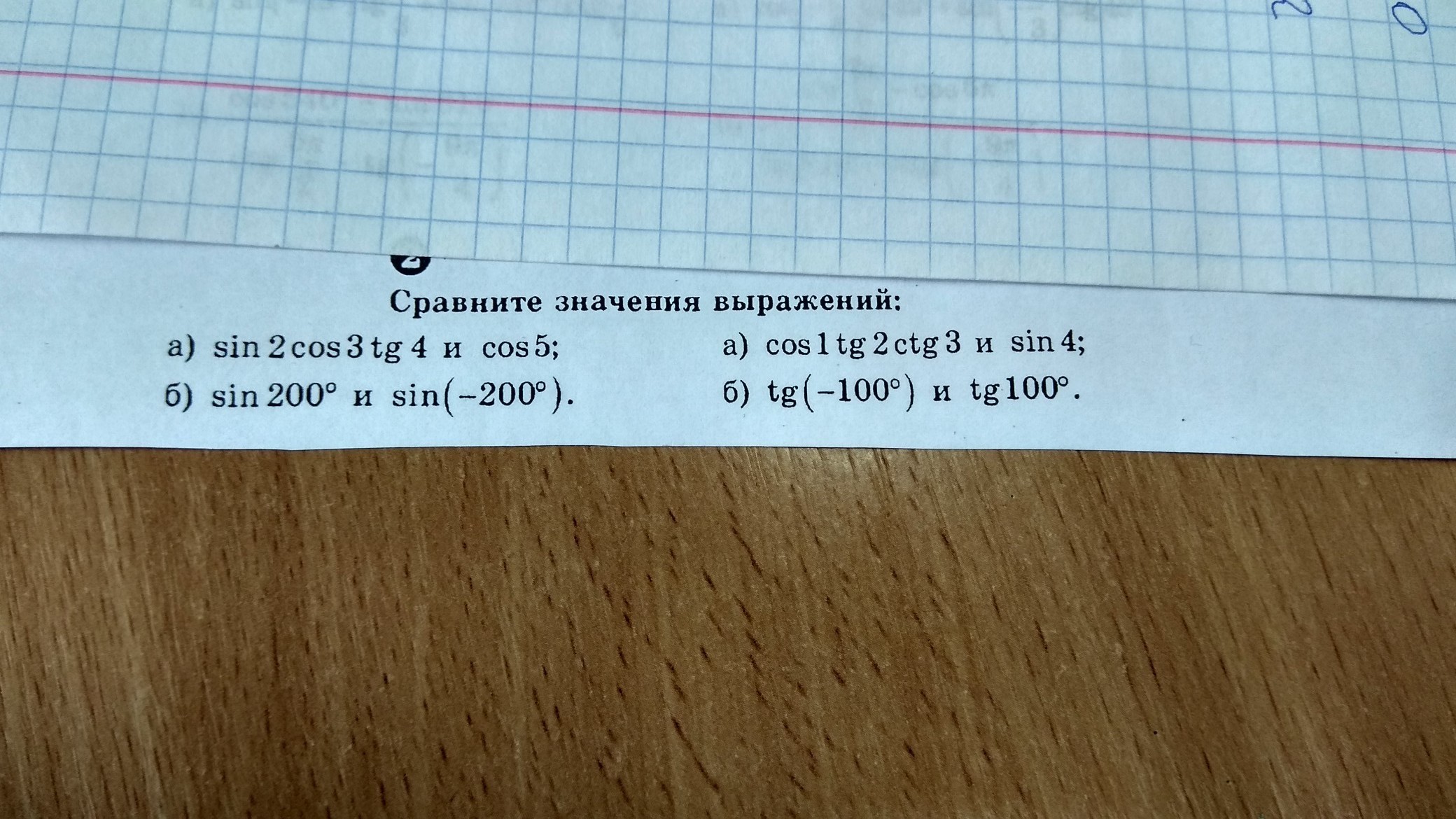 При сравнении величин учтём знаки тригонометрических функций в 1, 2, 3 и 4 четвертях, и что положительная величина всегда больше отрицательной.