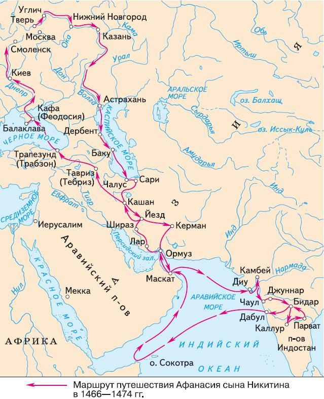 Какие моря пересёк путешественник Афанасий Никитин: