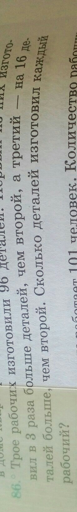 96:3-16=16 это мы узнаем сколько изготовил второй рабочий