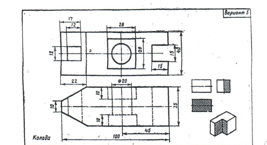 Сделать аксонометрическую проекцию детали, разрез, и вид слева.