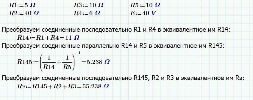 Определить эквивалентное сопротивление электрической цепи. R1=5ом,R2=40Ом,R3=10Ом,R4=6Ом,R5=10Ом,Е=40В.ДАЮ 90 БАЛЛОВ