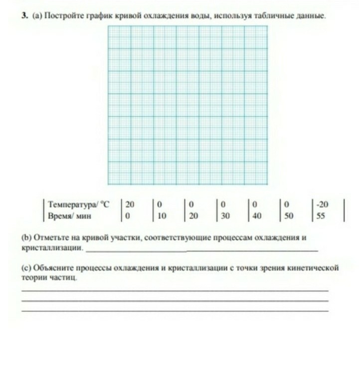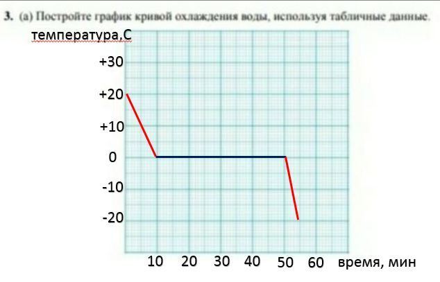 c). При охлаждении уменьшается температура вещества, следовательно, уменьшается и кинетическая энергия частиц. Расстояния между частицами уменьшаются, становится возможным более ярко выраженное взаимодействие между ними - они притягиваются друг к другу, образуя кристалл. В нашем случае первая красная часть графика - замерзание воды, ее переход из жидкого в твердое агрегатное состояние. При кристаллизации энергия практически не изменяется, т.к. не изменяется температура. Вторая красная часть графика характеризует дальнейшее уменьшение кинетической энергии частиц.