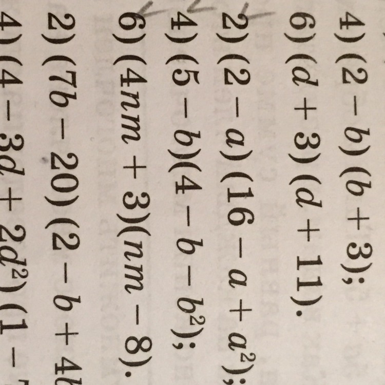 1) (2-b)(b+3)=2b-b²+6-3b=-b²-b+6