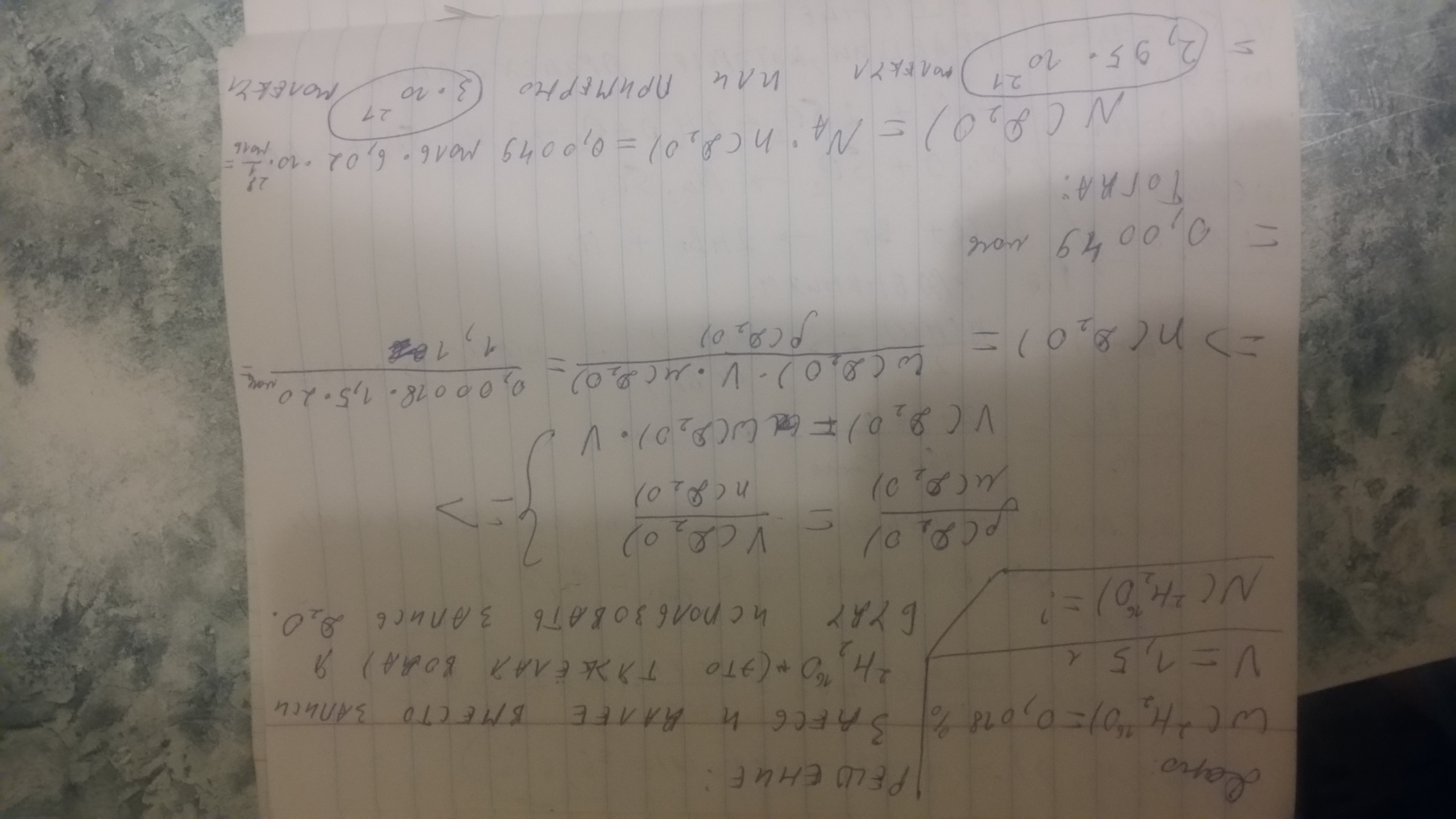В обычной водопроводной воде массовая доля тяжелой воды составляет 0,018%. Сколько молекул тяжелой воды (2Н216О) попадает ежесуточно в организм человека, потребляющего 1,5 л воды в сутки?