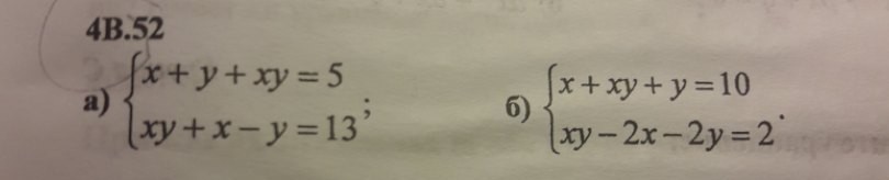 В задание А пробуем прировнять .Получаем xy+x=5-y и xy+x=13+y . То есть 5-y=13+y . Игрики в левую часть. А числа в правую. Получаем y=-4 .А x= -3 . На Б голова уже не варит