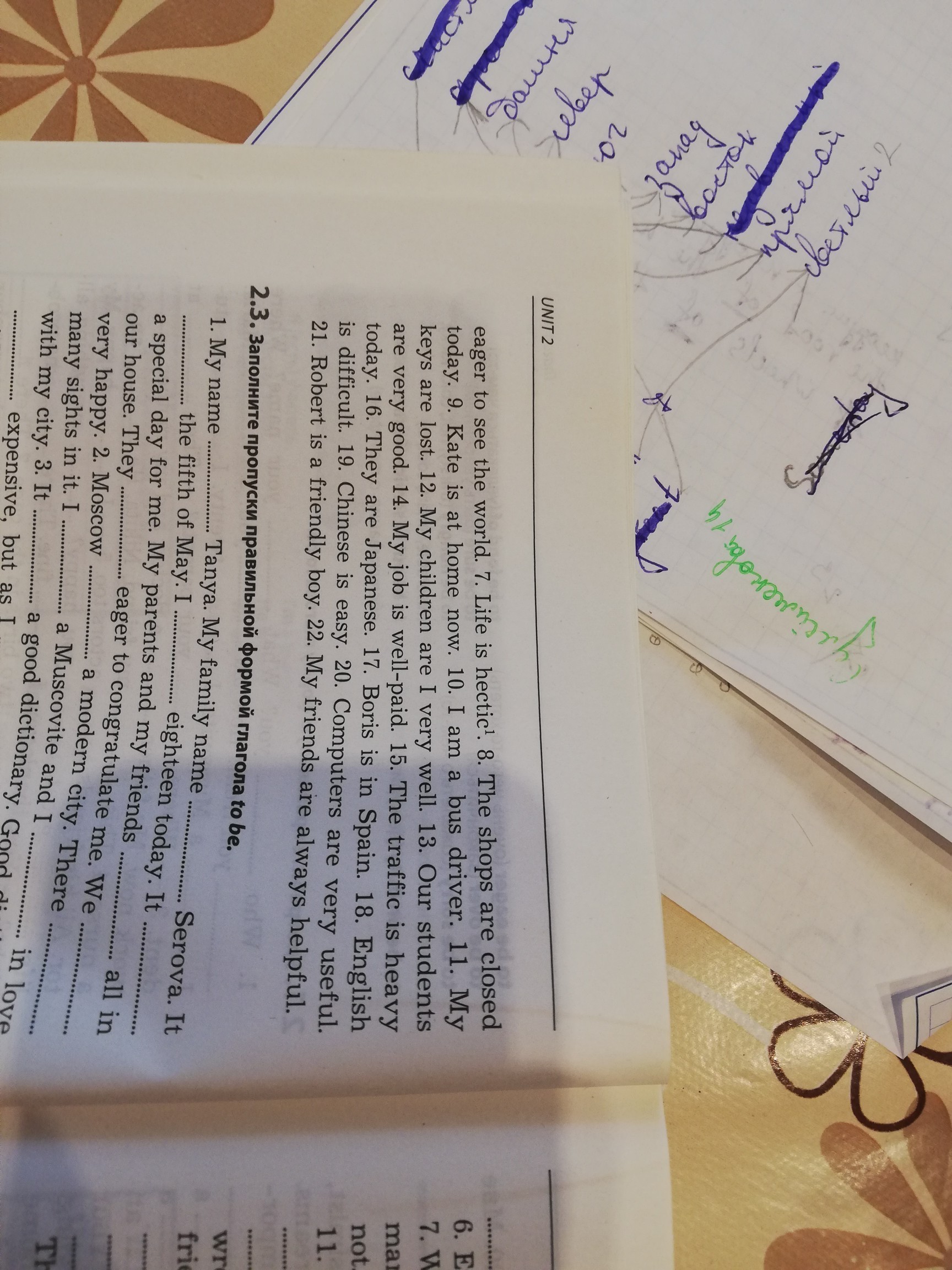 1. My name is Tanya. My family name is Serova. It is the ifth of May. I am eighteen today. It is a special day for me. My parents and my friends are all in our house. They are eager to congratulate me. We are very happy. 2.Moscow is a modern city. There are many sights in it. i am a Muscovite and I am in love with my city.3. It is a good dictionary.