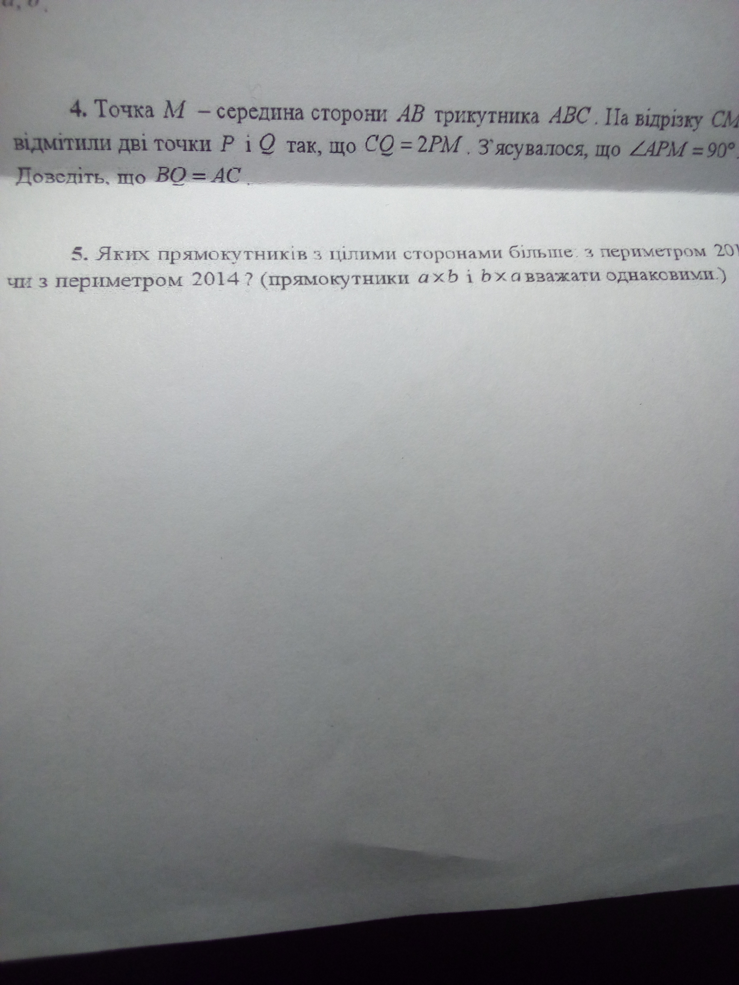 Точка М-середина стороны АВ треугольника АВС.На отрезке СМ отметили две точки Р и Q так,что CQ=2PM.Выяснилось,что кут АРМ =90°.Доведите,что BQ=AC