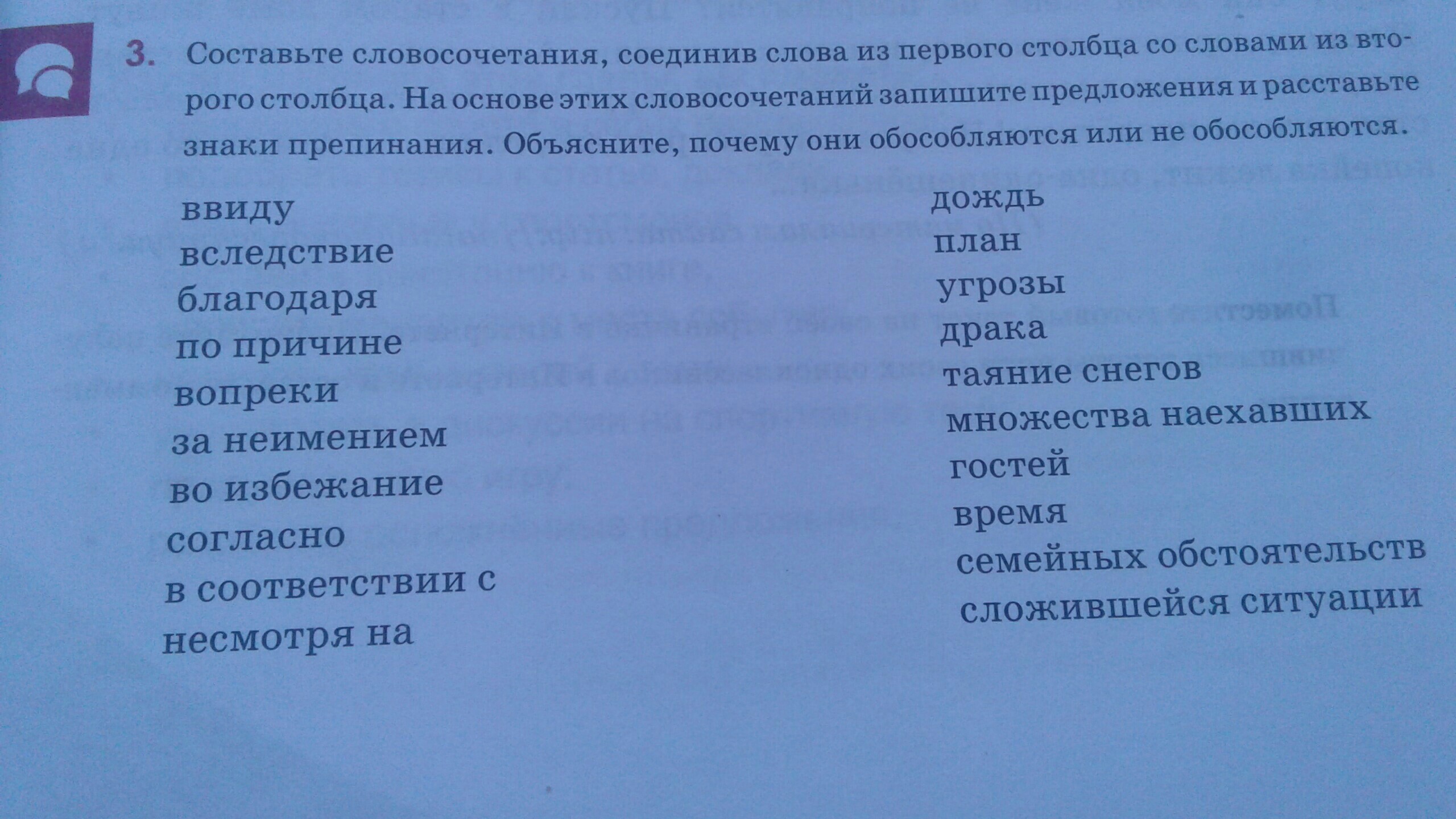 соответствии со сложившшейся ситуацией,согласно плану, вследствие угрозы,благодаря таянию снегов,вопреки семейным обстоятельствам,несмотря на время