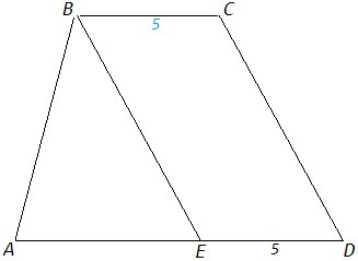 В трапеции ADCD AD и BC - основания , AD>BC . На стороне AD отмечена точка E так , что EBCD - параллелограмм . Периметр трапеции равен 32 см, DE =5см . Найдите периметр треугольника ABE