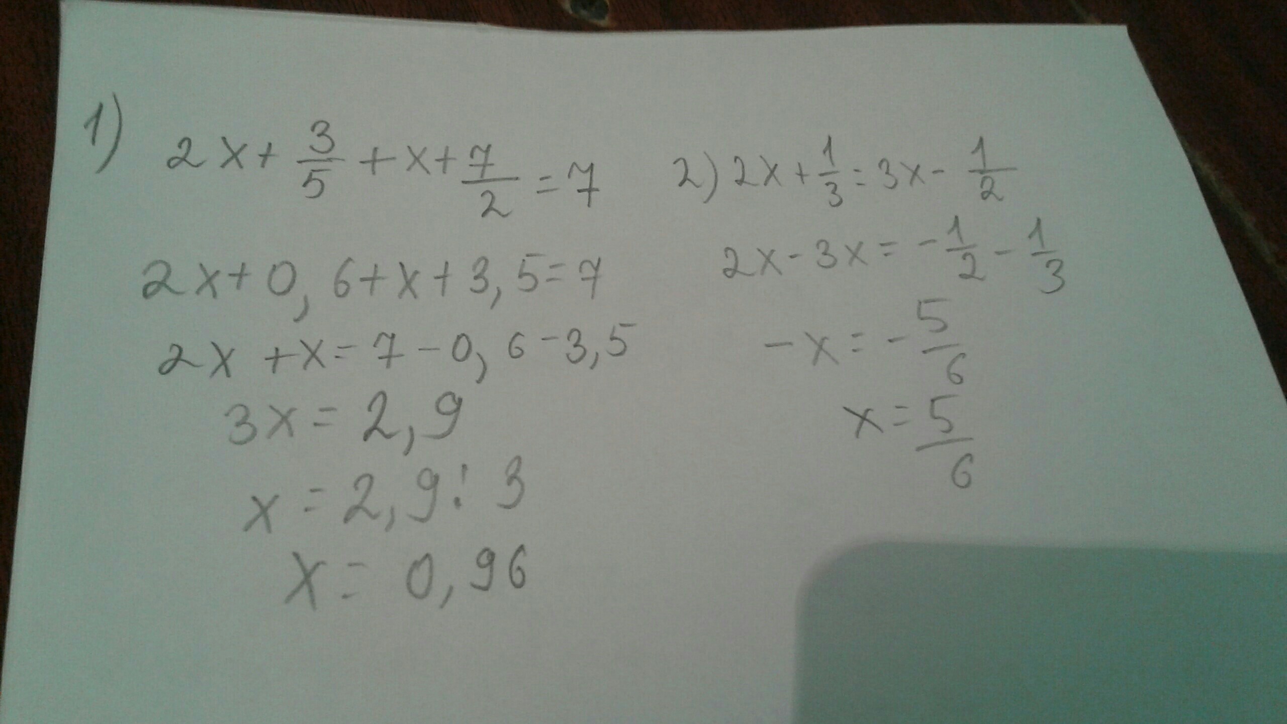 2x+3( дробная черта)5 + x+7(дробная черта)2= 7