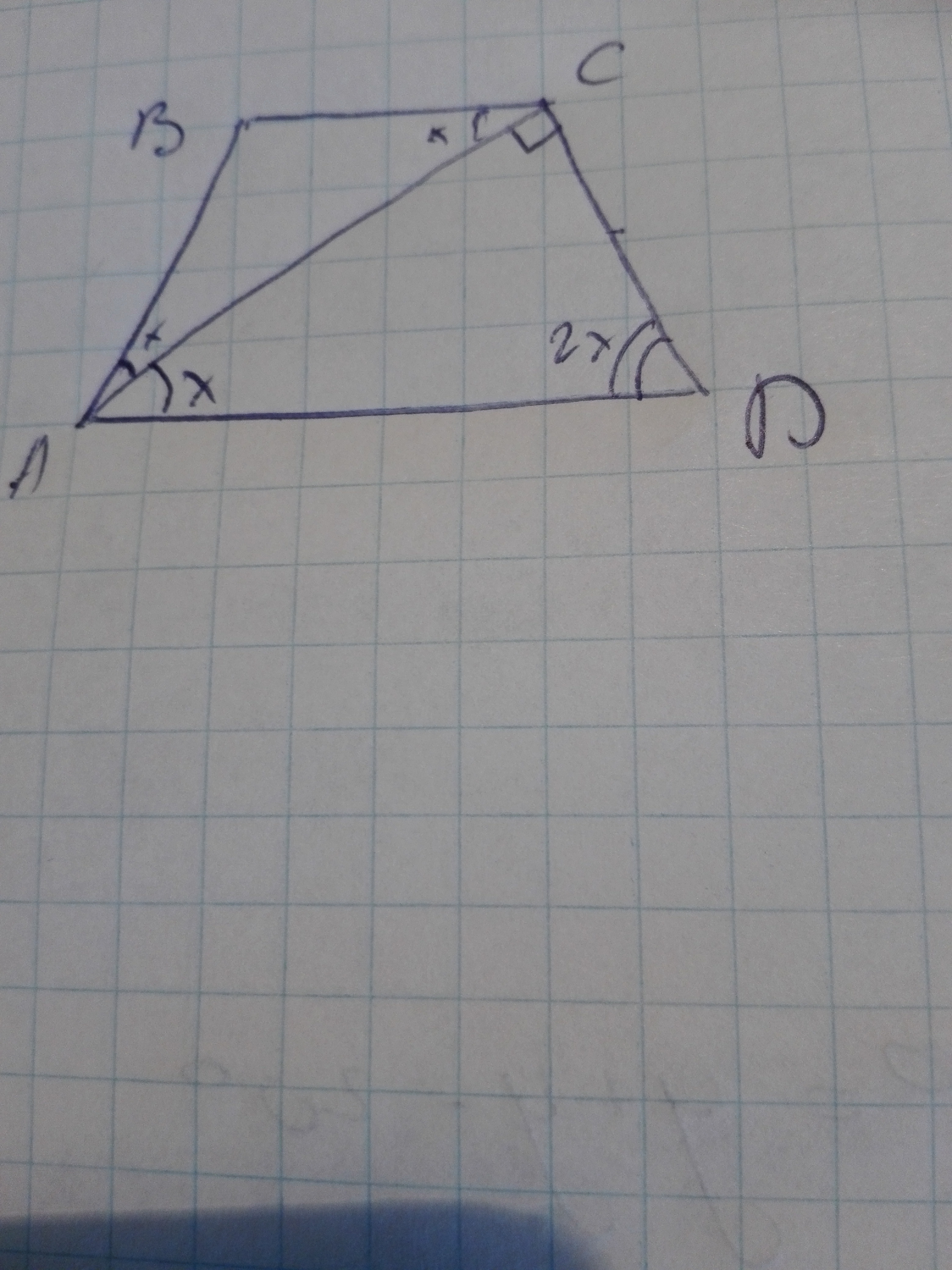 знайді кути рівнобічної трапеції, якщо її верхня основа дорівнює бічній стороні, а діагональ перпендикулярна бічній стороні